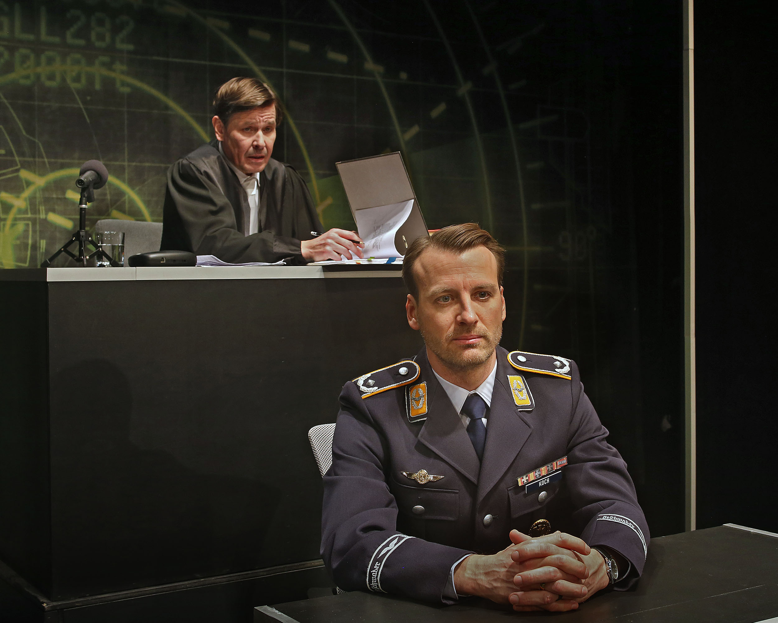 Die große Strafkammer des Berliner Schwurgerichts verhandelt darüber, ob Lars Koch für den Mord schuldig gesprochen werden kann. Der Verteidiger beruft sich auf eine Abwägungsentscheidung, immerhin habe der Pilot mit seiner Handlung viele Tausend Menschen das Leben gerettet. Die Anklage wirft dem Piloten Befehlsmissachtung vor, aber vor allem habe er die Menschenwürde missachtet, da er durch seine Gegenrechnung von Menschenleben die Passagiere instrumentalisiert habe, die aber nichtsdestotrotz genauso ein Recht auf Leben haben wie alle anderen.